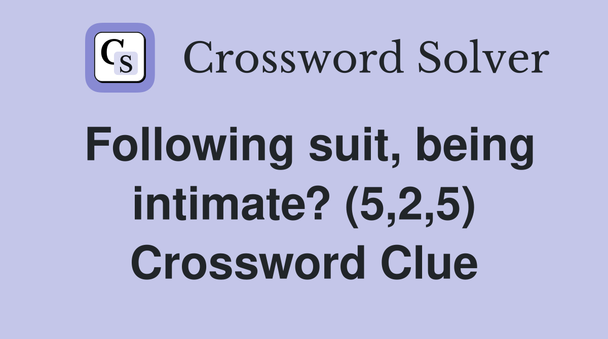 Following suit being intimate? (5 2 5) Crossword Clue Answers