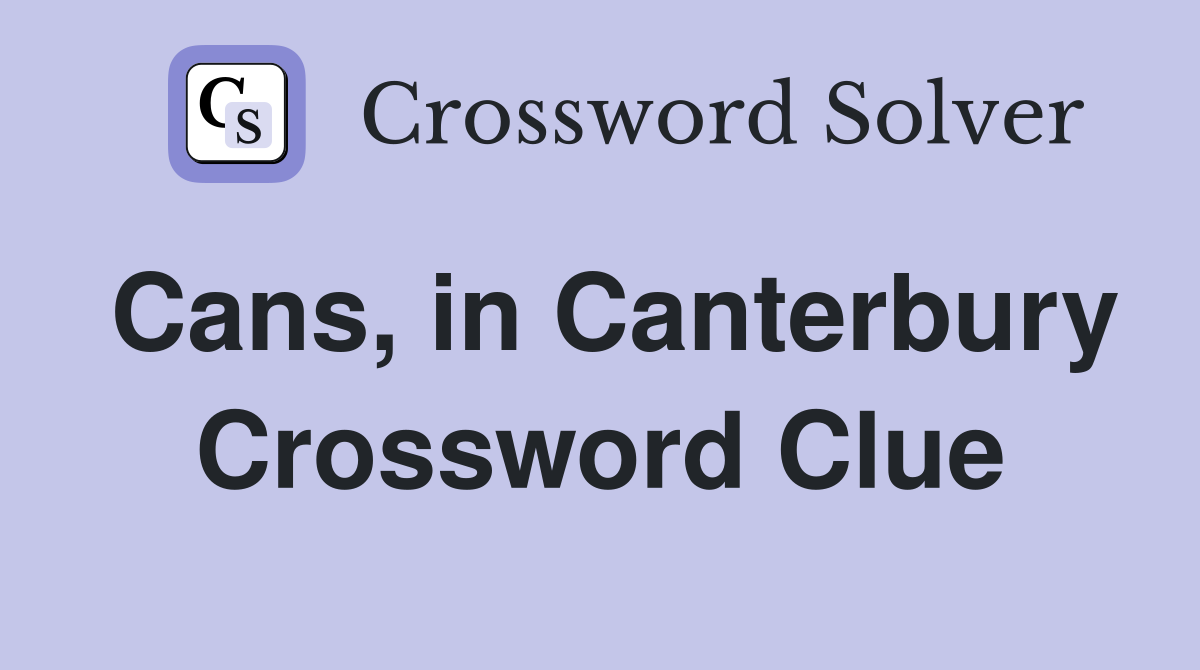 Cans in Canterbury Crossword Clue Answers Crossword Solver