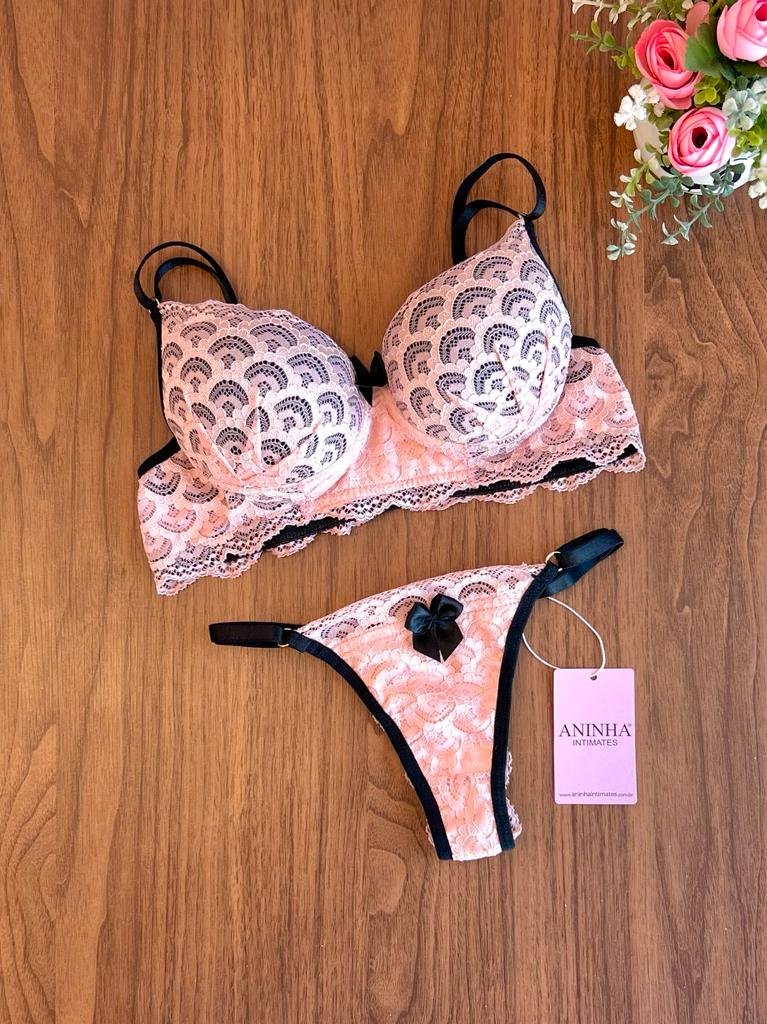Conjunto Dubai Romance com Preto Aninha Intimates Lingerie
