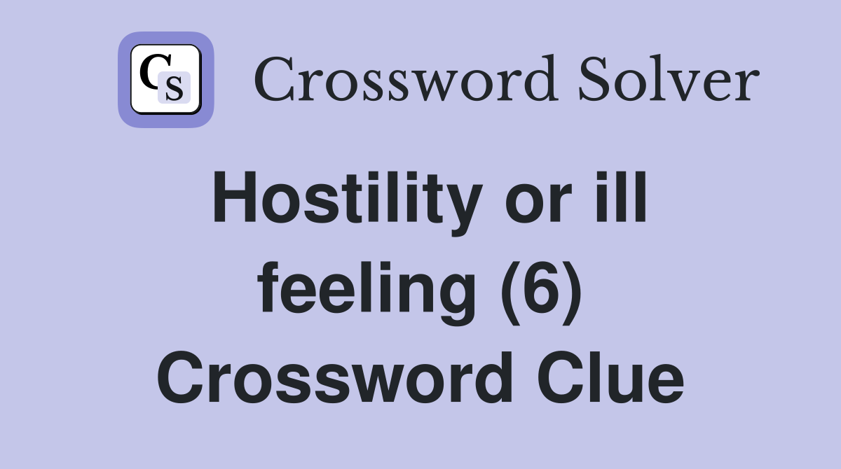 Hostility or ill feeling (6) Crossword Clue Answers Crossword Solver
