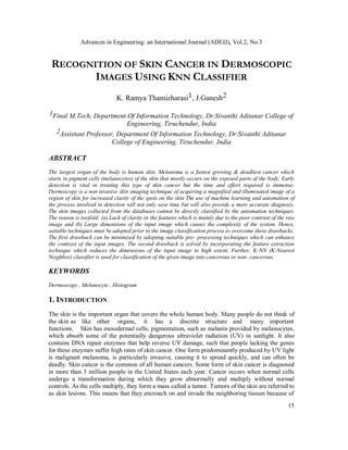 RECOGNITION OF SKIN CANCER IN DERMOSCOPIC IMAGES USING KNN CLASSIFIER PDF