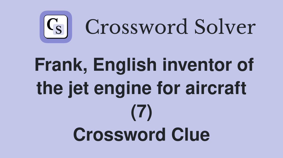 Frank English inventor of the jet engine for aircraft (7) Crossword