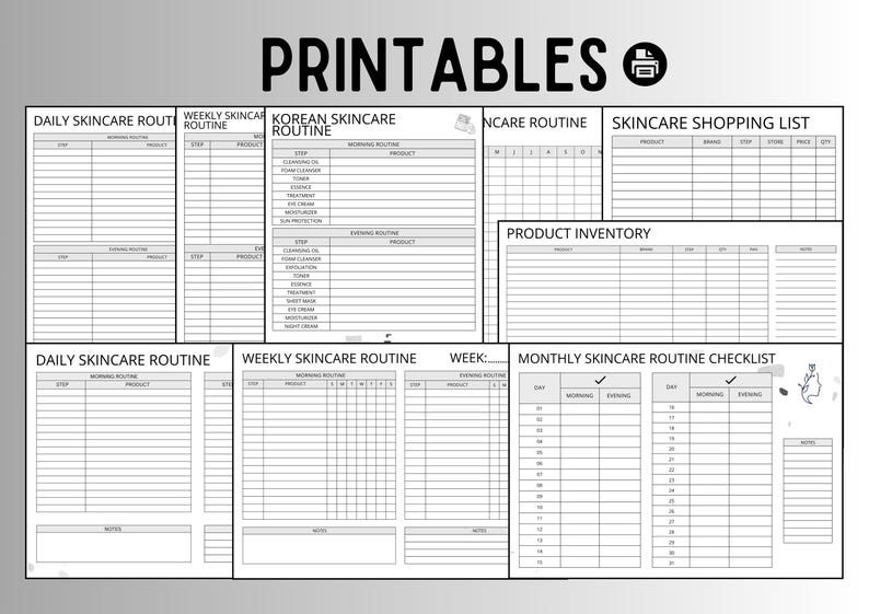 Skincare Routine Gray Pack: Printable Self care Planner Daily