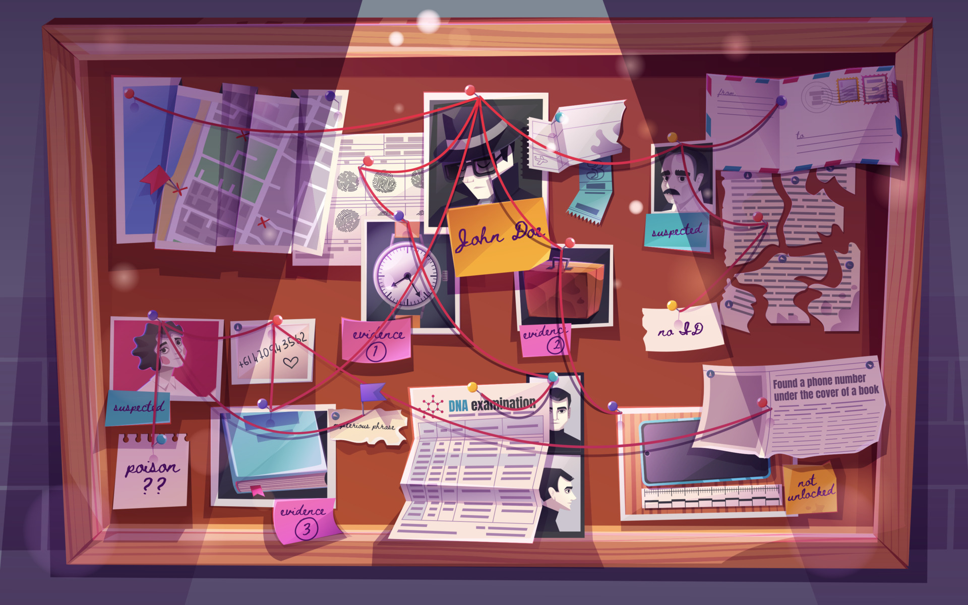 Detective board for crime investigation evidence 17535997 Vector Art at