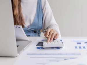 Women Business People Use Calculators Calculate Stock Photo 2182019909