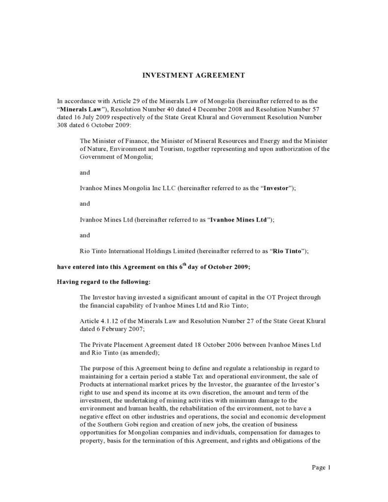 Investment Contract Templates