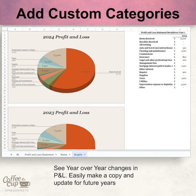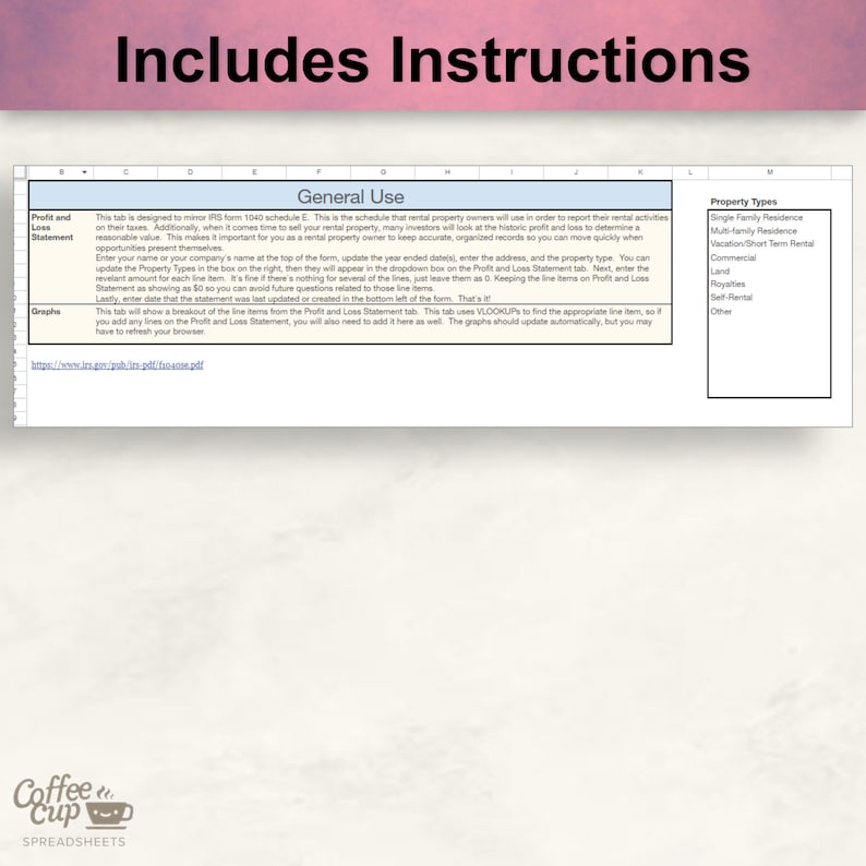 Rental Property Profit and Loss Statement Google Sheet and Etsy