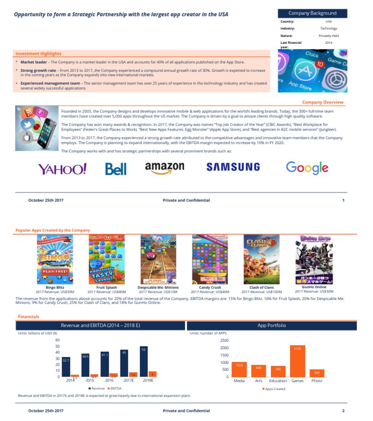 Investment Teaser Template PDF Application Software Mobile App