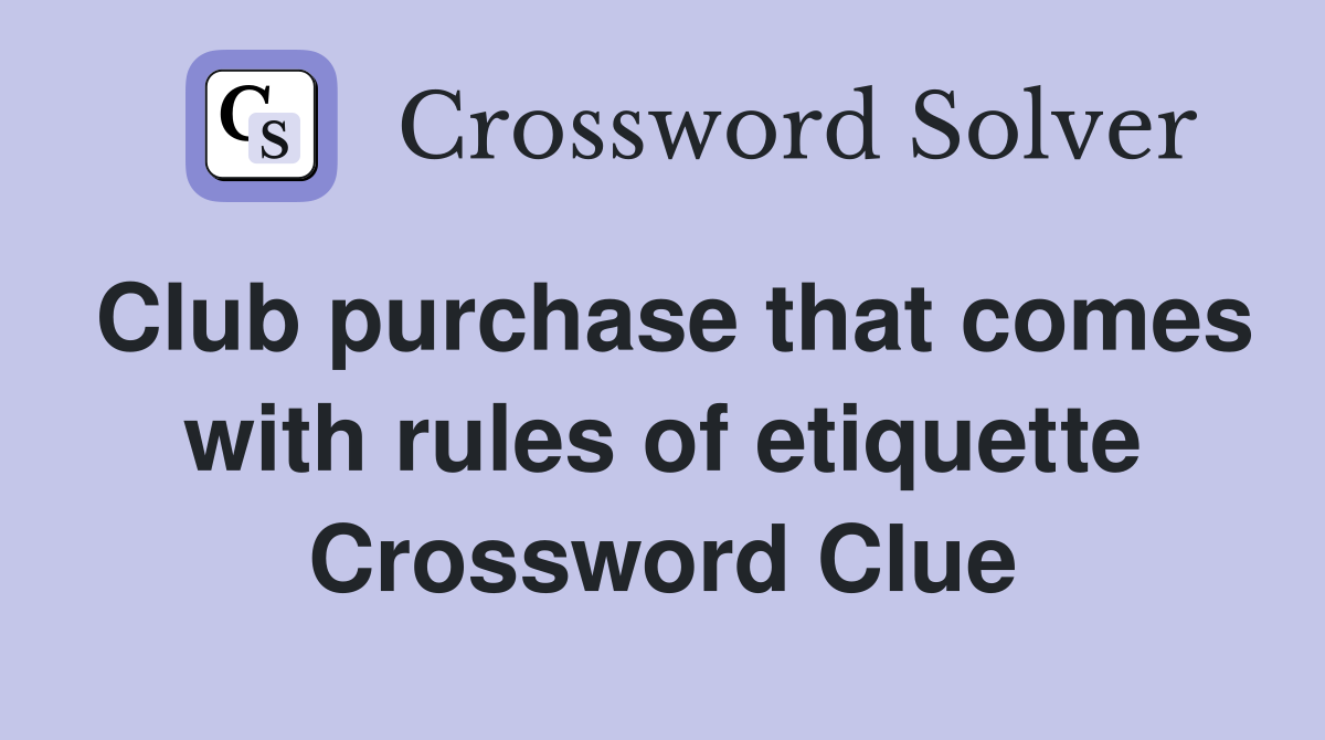 Club purchase that comes with rules of etiquette Crossword Clue
