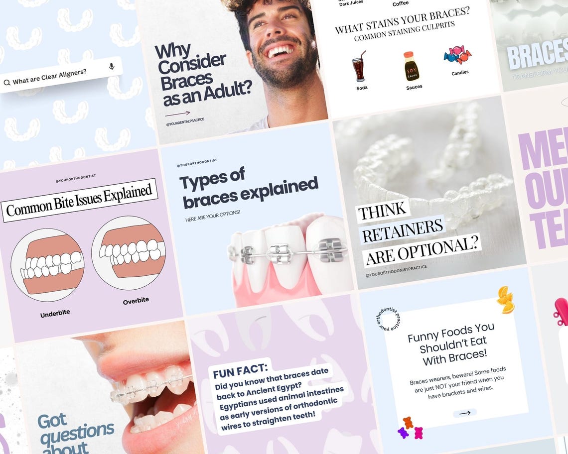 Orthodontist Instagram Templates Braces Invisalign Social Media Kit