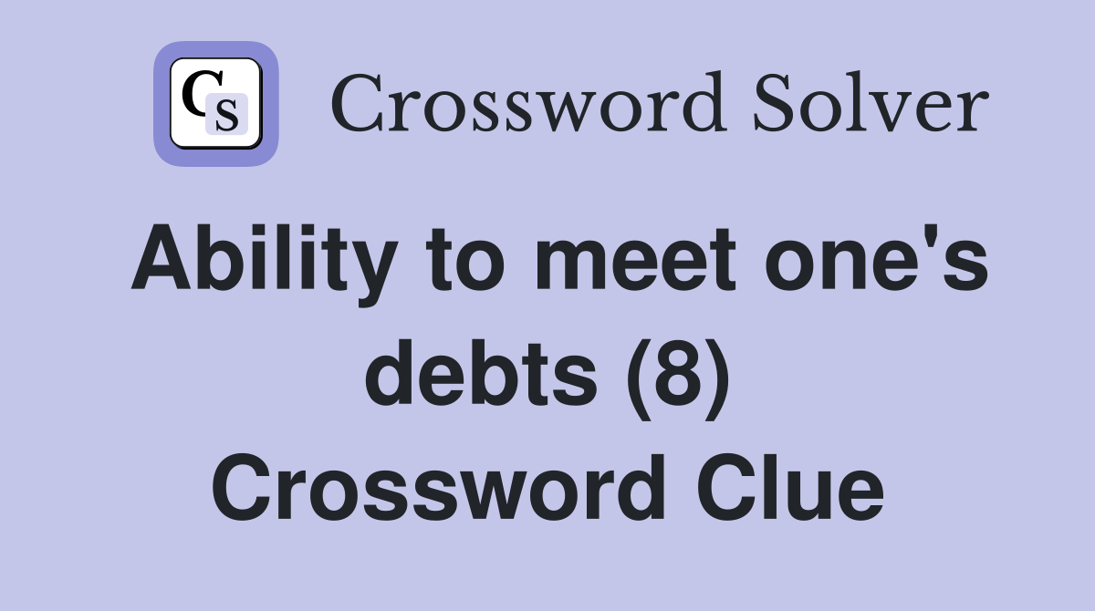 Ability to meet one #39 s debts (8) Crossword Clue Answers Crossword Solver