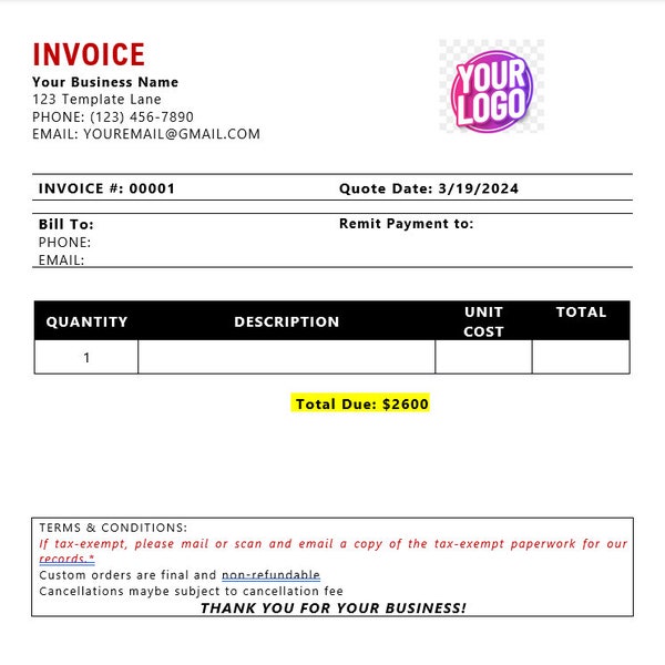Invoice Template Download Small Business Canva Google Sheets Editable