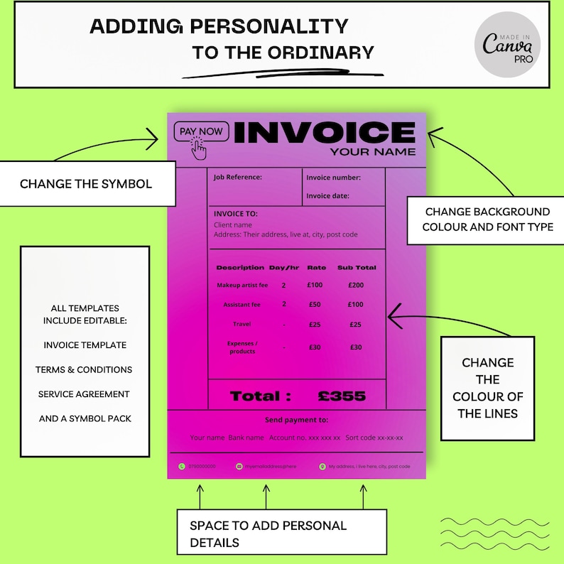 Beauty Business Invoice Editable Invoice for Makeup Artists Invoice