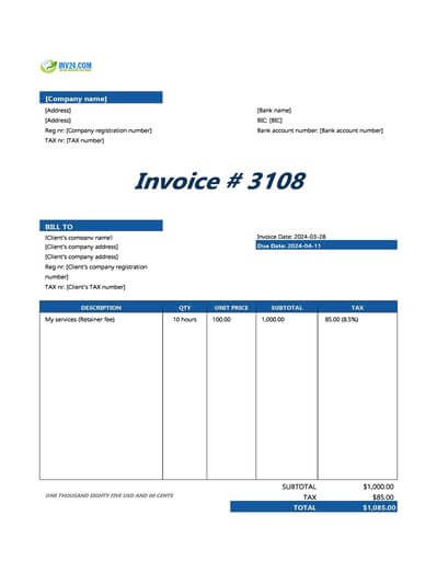 Modern Invoice Template (Word Excel PDF Google Docs)
