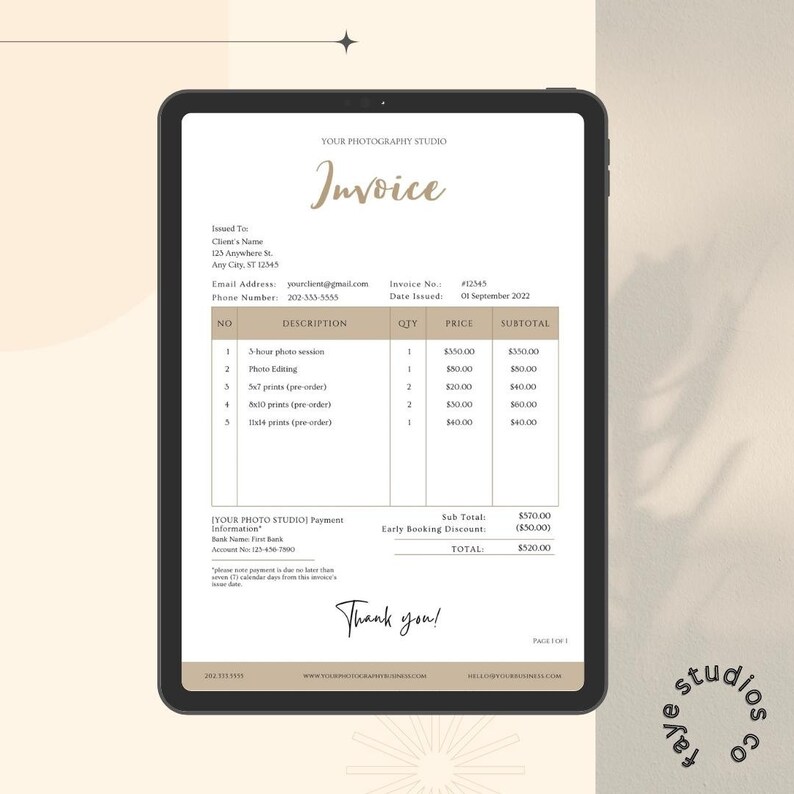 Invoice template for photographers Artofit