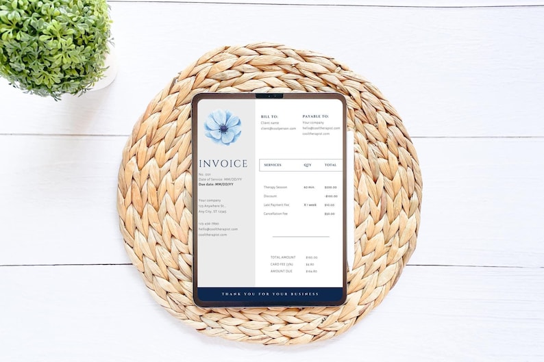 EDITABLE Modern Invoice Template for Mental Health Therapists