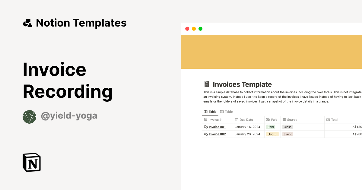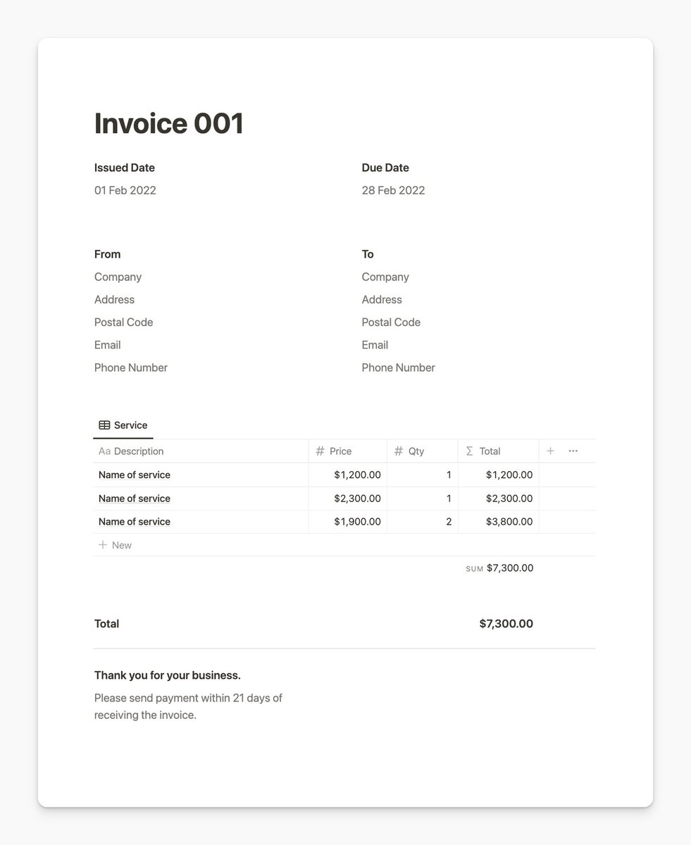 Invoice Template Notion