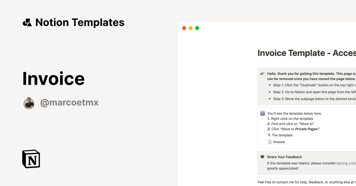 Invoice by Marco Elizalde Notion Template