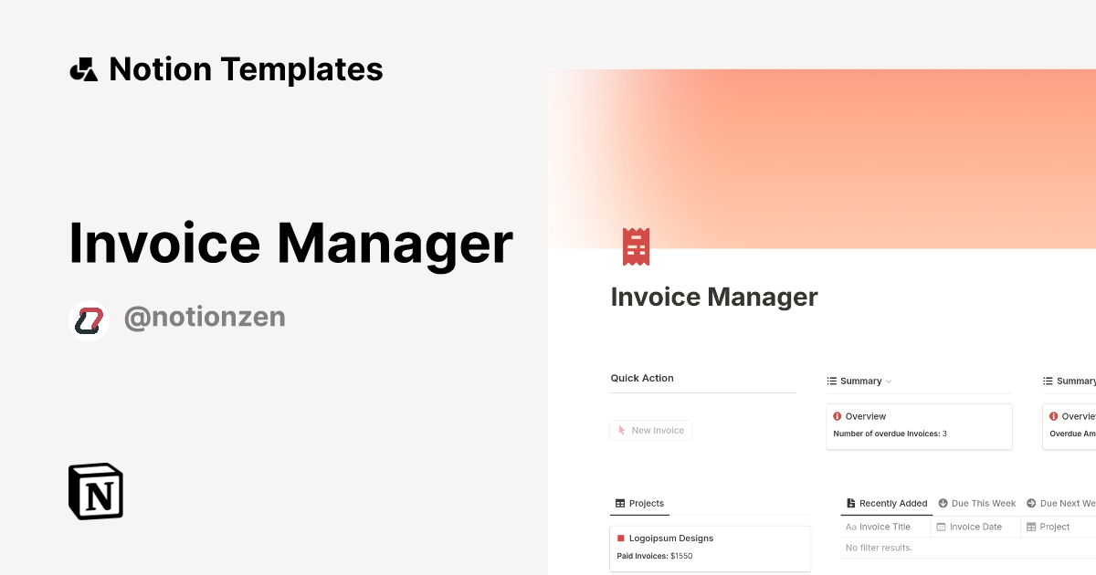 Invoice Manager Template by notionzen Notion Marketplace