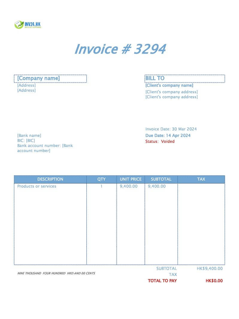 Void Invoice in Hong Kong: Meaning Example
