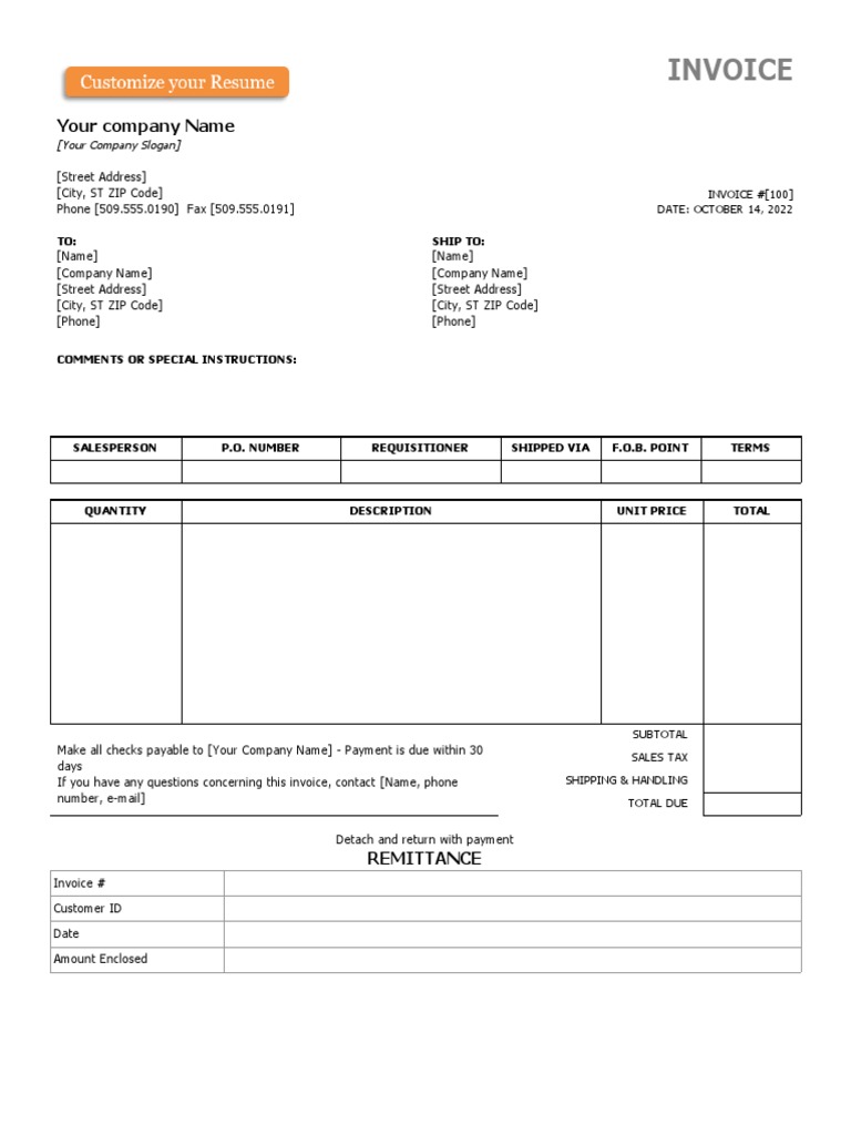 Basic Invoice With Remittance Slip Template