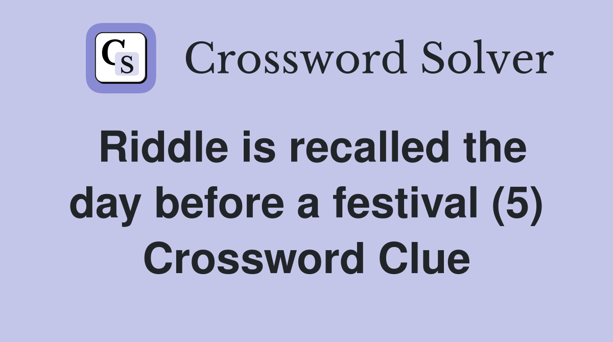 Riddle is recalled the day before a festival (5) Crossword Clue