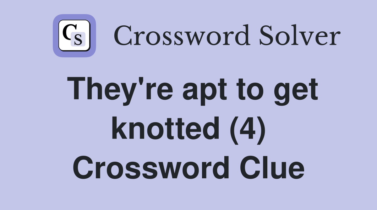 They #39 re apt to get knotted (4) Crossword Clue Answers Crossword Solver