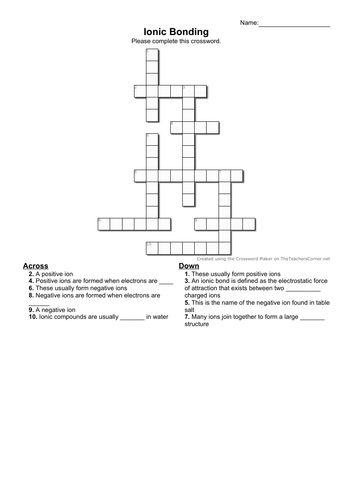 GCSE Ionic Bonding Crossword Puzzle (With Answers) Teaching Resources
