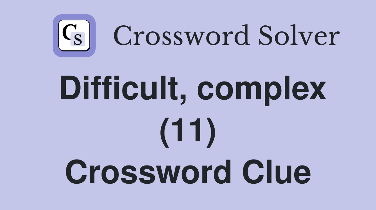 Difficult complex (11) Crossword Clue Answers Crossword Solver