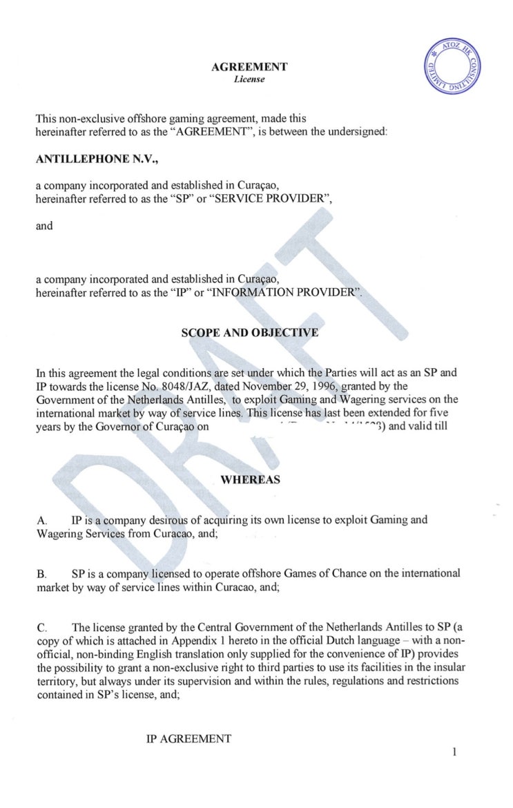 퀴라소 게임라이선스 IP license agreement : 네이버 블로그