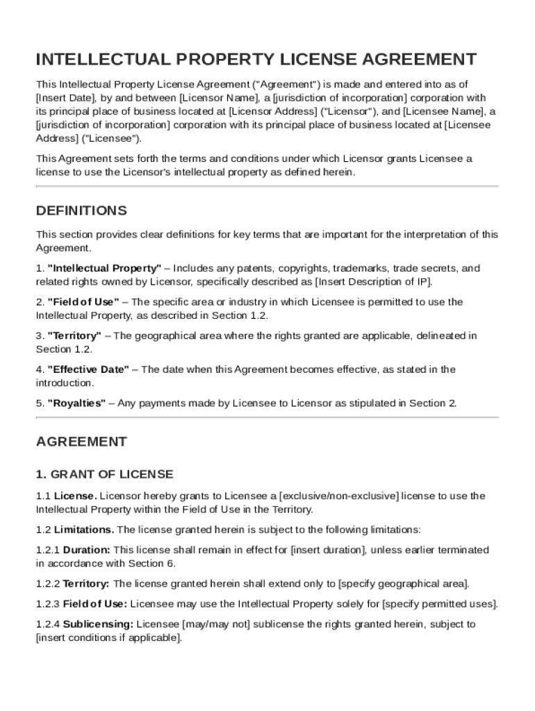 Intellectual Property License Agreement Template (Word PDF) Free Trial