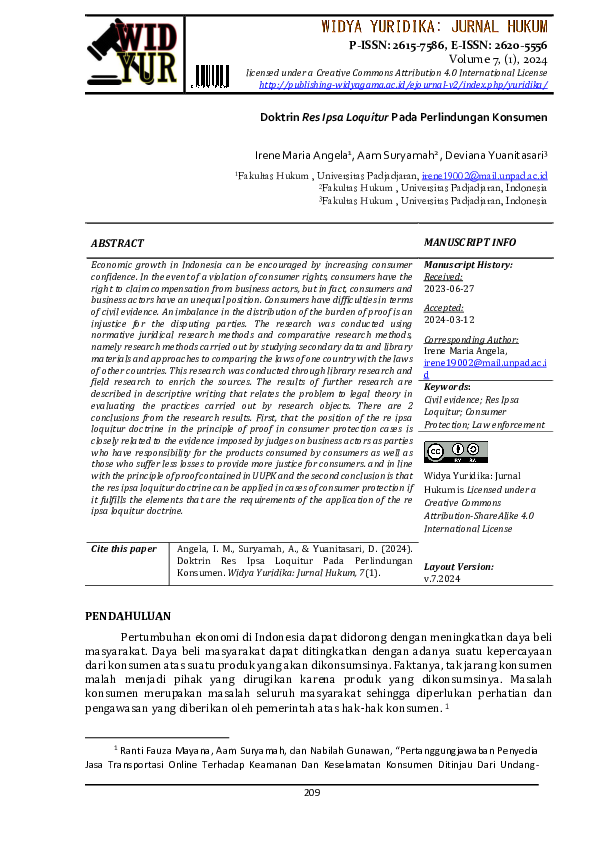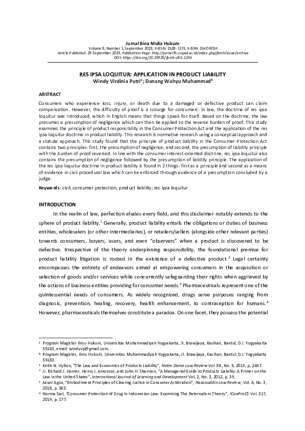 (PDF) Doktrin Res Ipsa Loquitur Pada Perlindungan Konsumen