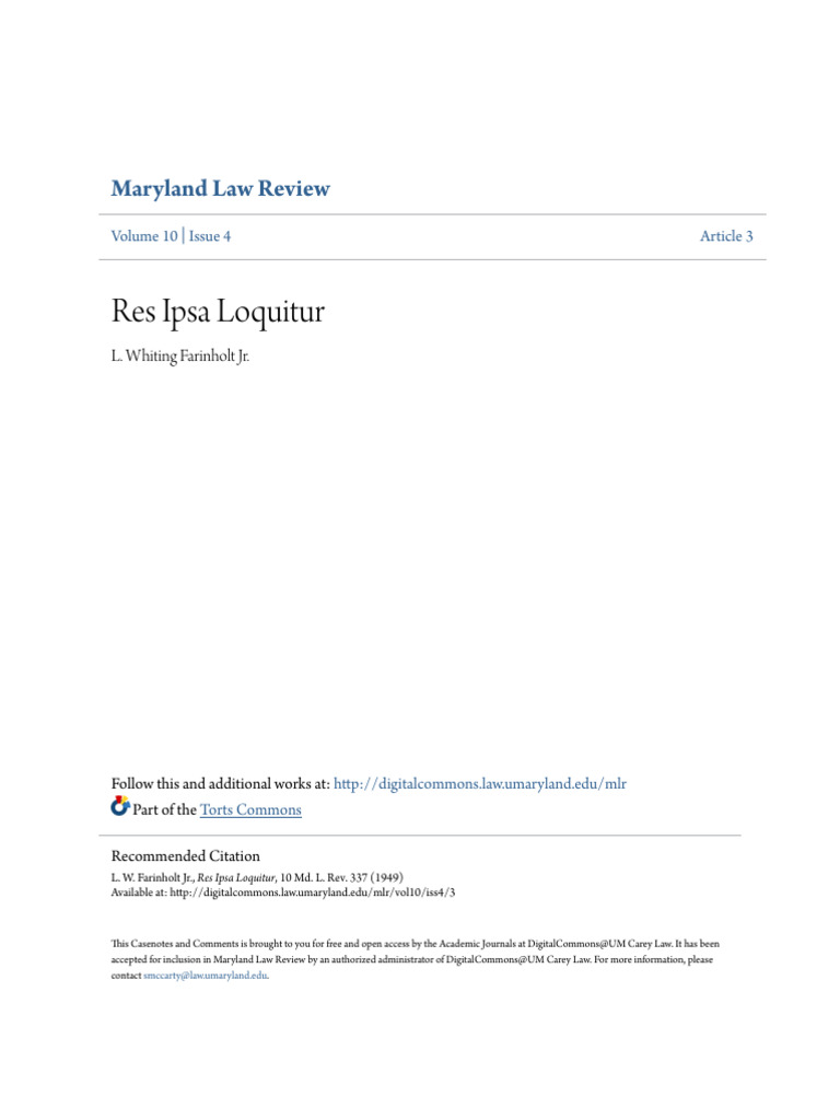 (PDF) Res Ipsa Loquitur: Application in Product Liability
