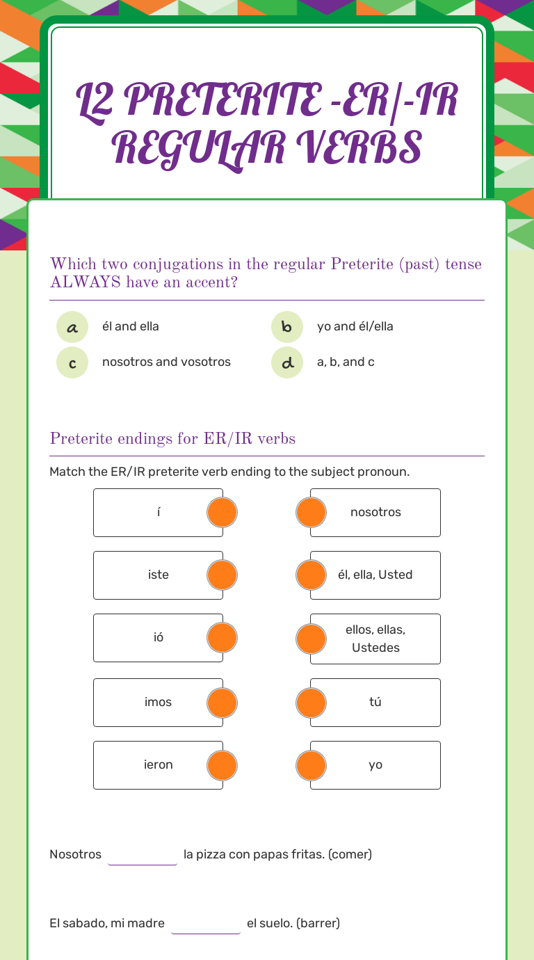 Preterite ER/ IR regular verbs Interactive Worksheet by Anabel Ramos