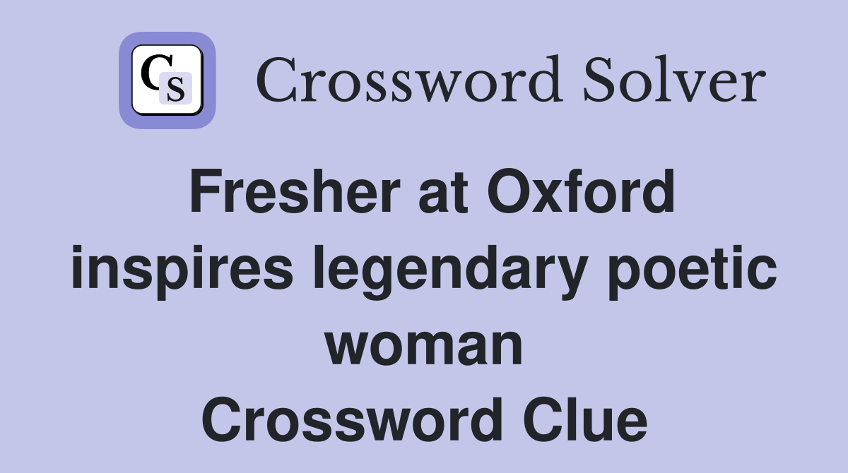 Fresher at Oxford inspires legendary poetic woman Crossword Clue