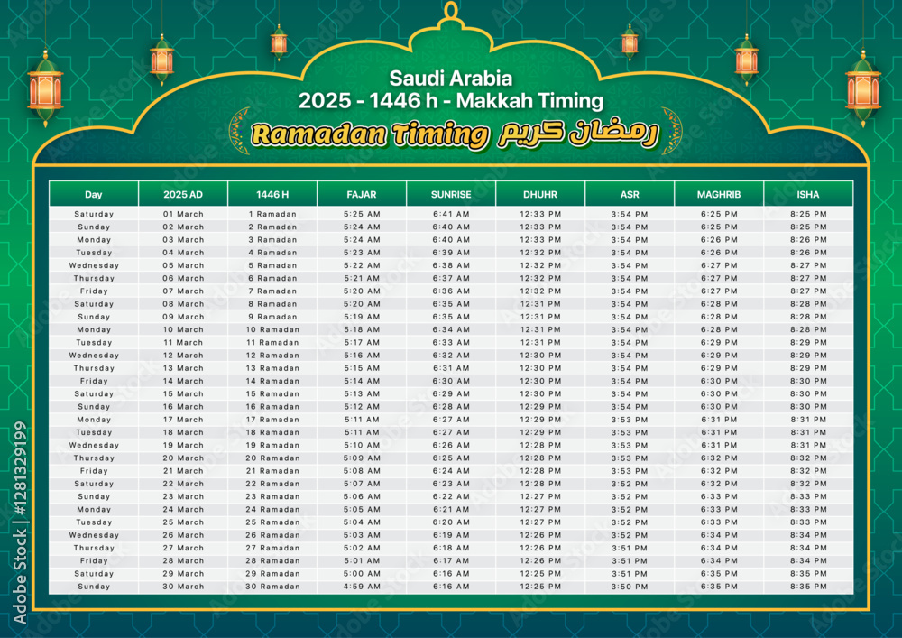Ramadan Timing in Makkah 2025 Saudi Arabia Islamic Calendar 2025