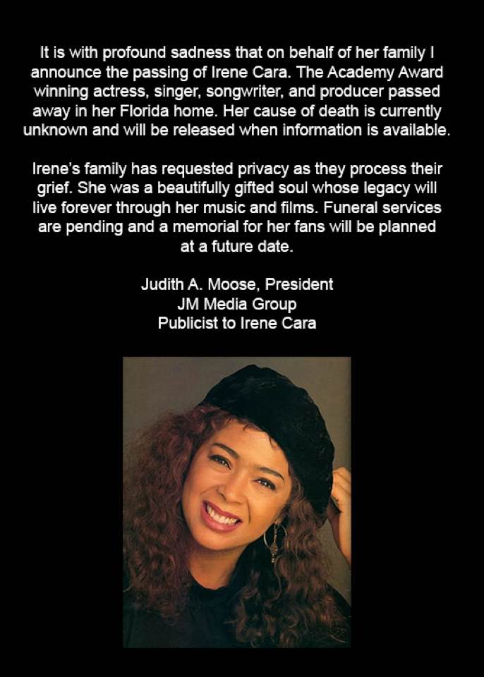 American singer of hit 1983 single Flashdance What a Feeling Irene