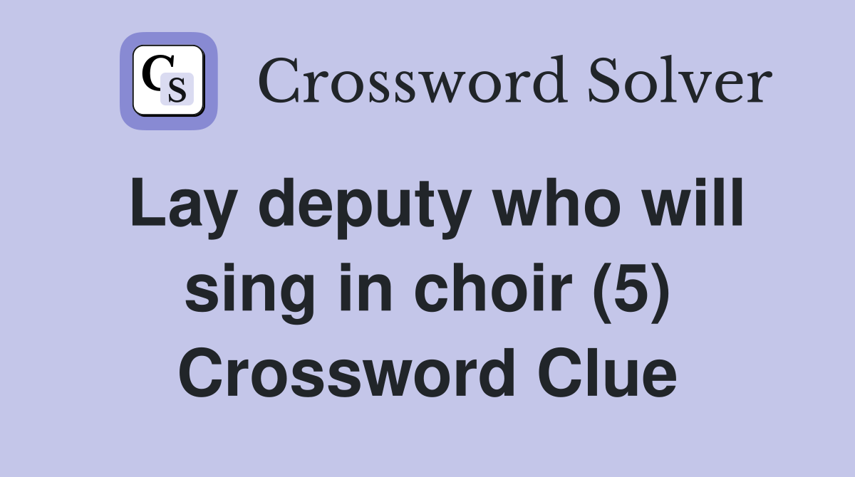 Lay deputy who will sing in choir (5) Crossword Clue Answers