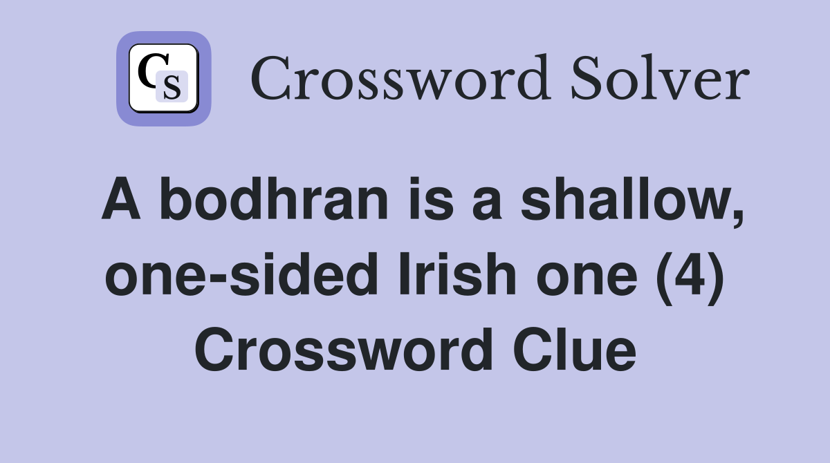 A bodhran is a shallow one sided Irish one (4) Crossword Clue
