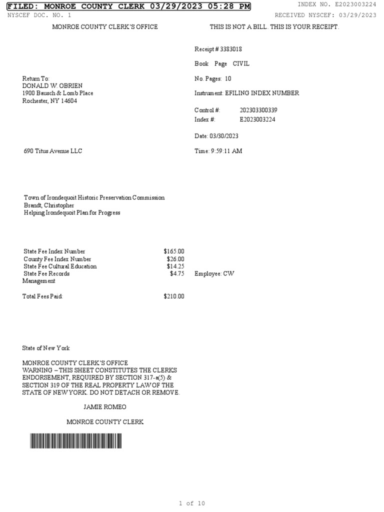 Petition Against Town of Irondequoit Historic Preservation Commission