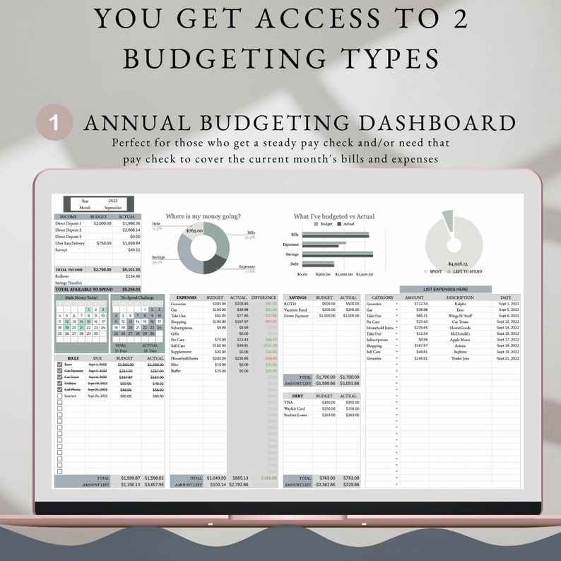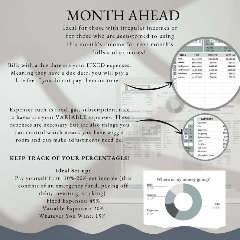 Annual Month Ahead Budget Irregular Income Budget Monthly Etsy Canada