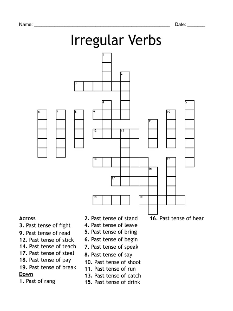 Regular Irregular Verbs Crossword Labs