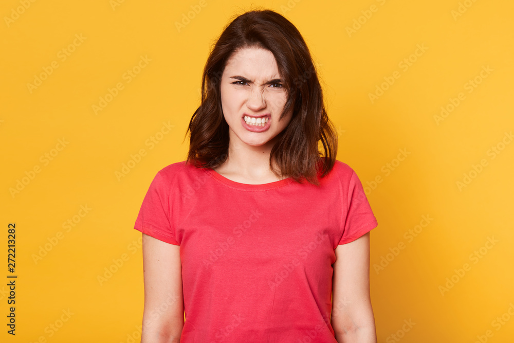 Portrait of an Irritated Angry Mad Young Woman Threatening Someone
