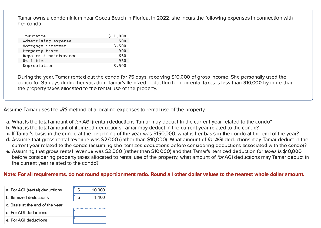 Solved Tamar owns a condominium near Cocoa Beach in Florida Chegg com