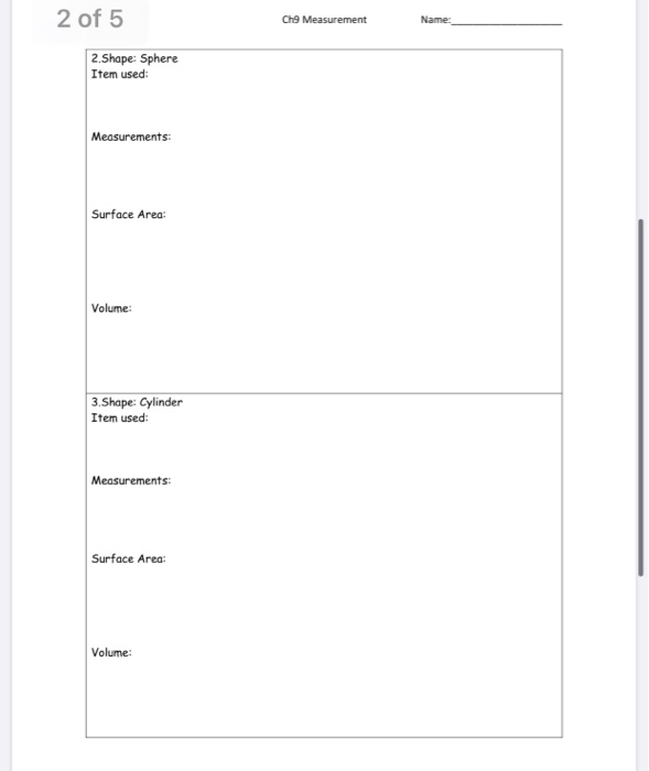 Solved 2 of 5 Che Measurement Name: 2 Shape: Sphere Item Chegg com