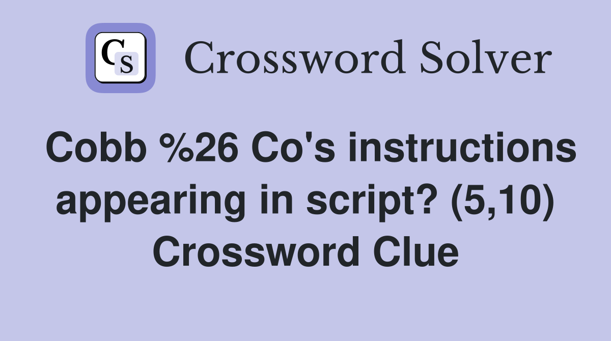 Cobb & Co #39 s instructions appearing in script? (5 10) Crossword Clue