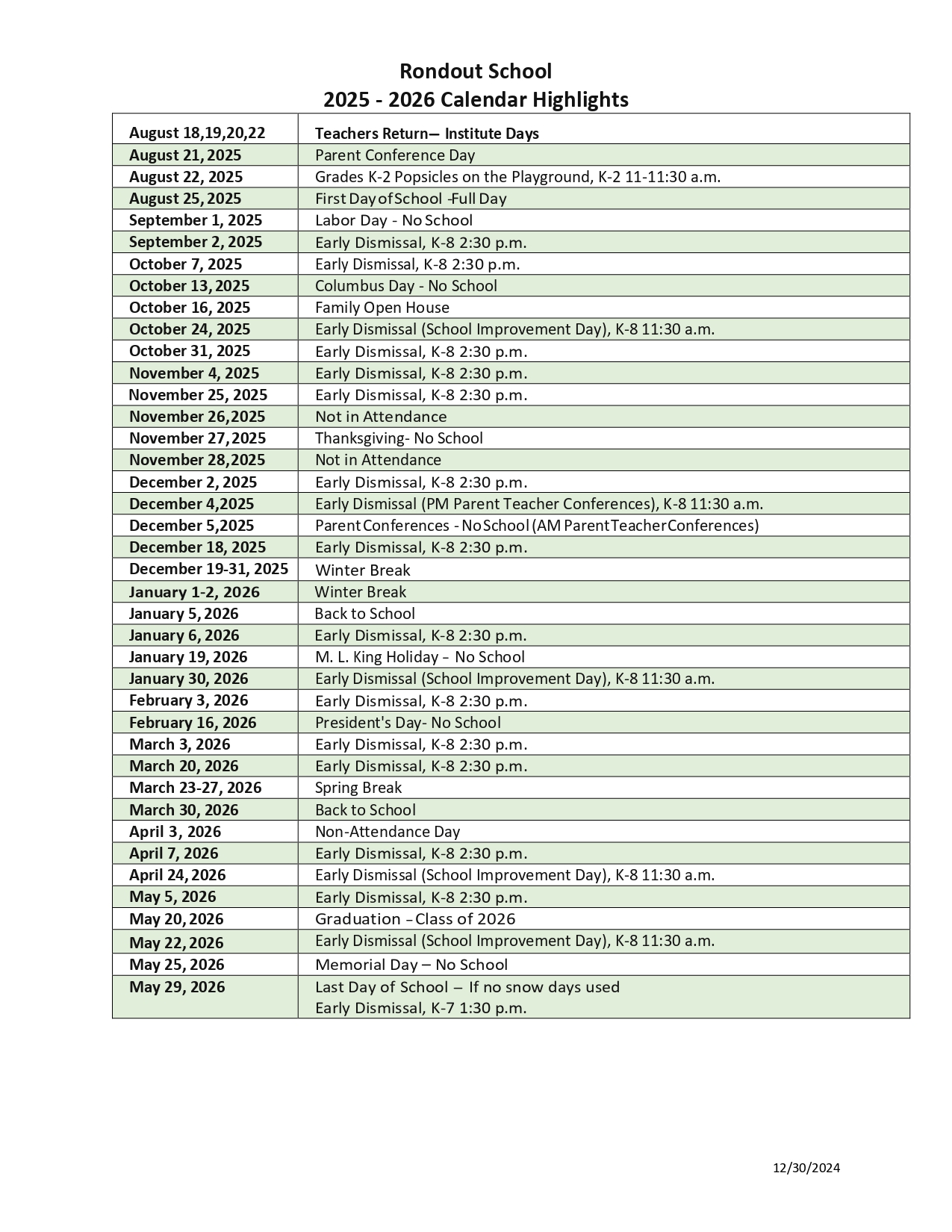 Rondout School District 72 Calendar 25 26 REVISED EduCounty