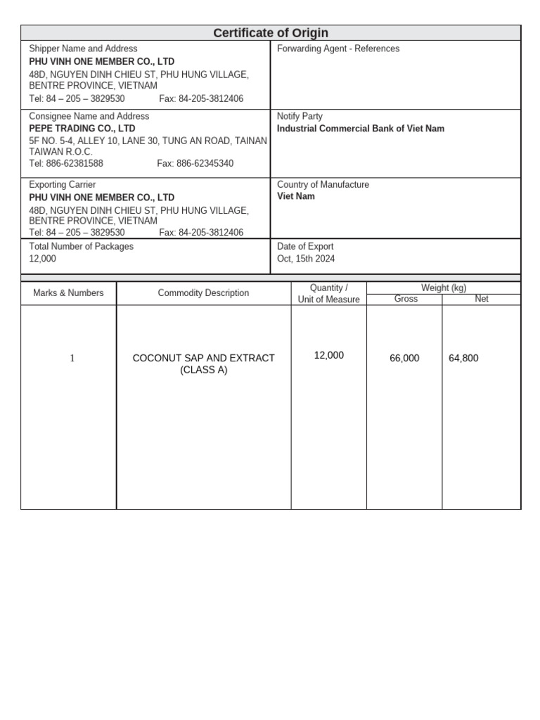 Certificate of Origin PDF