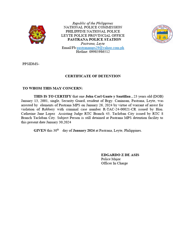 Detention Certificate PDF