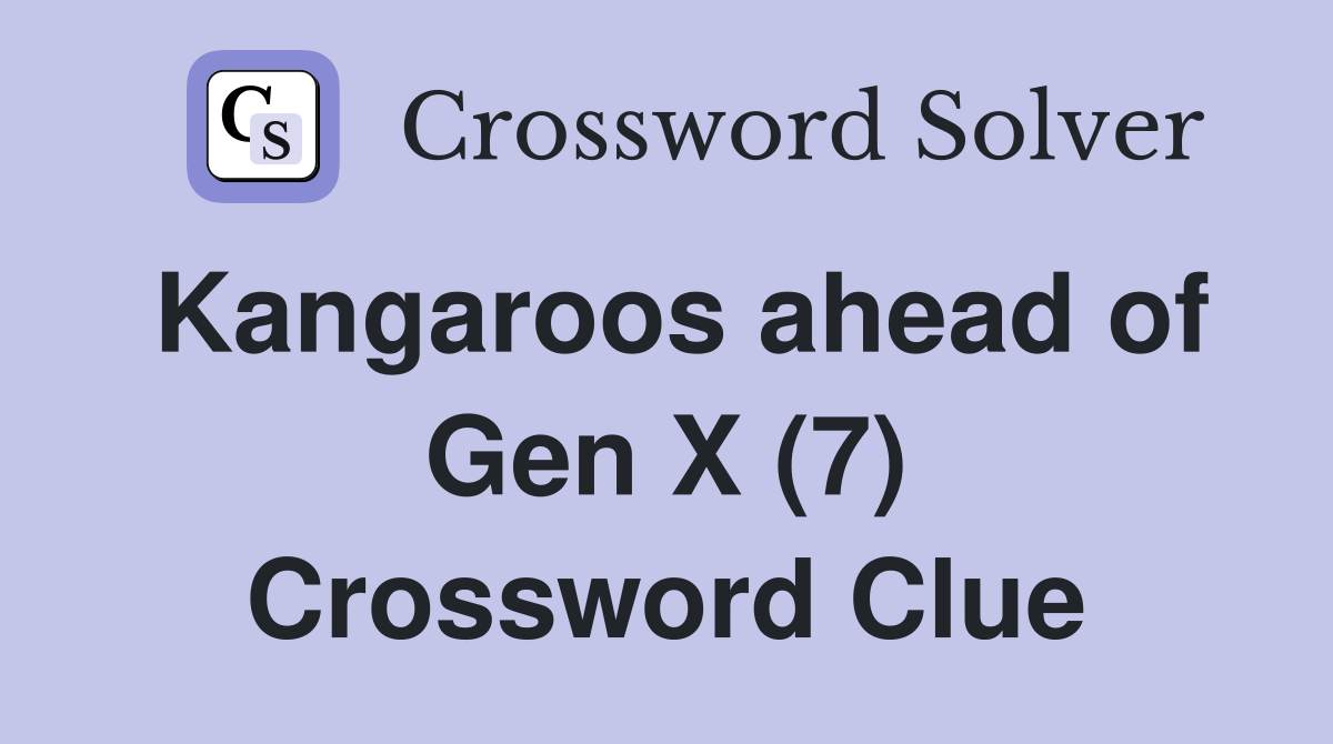 Kangaroos ahead of Gen X (7) Crossword Clue Answers Crossword Solver